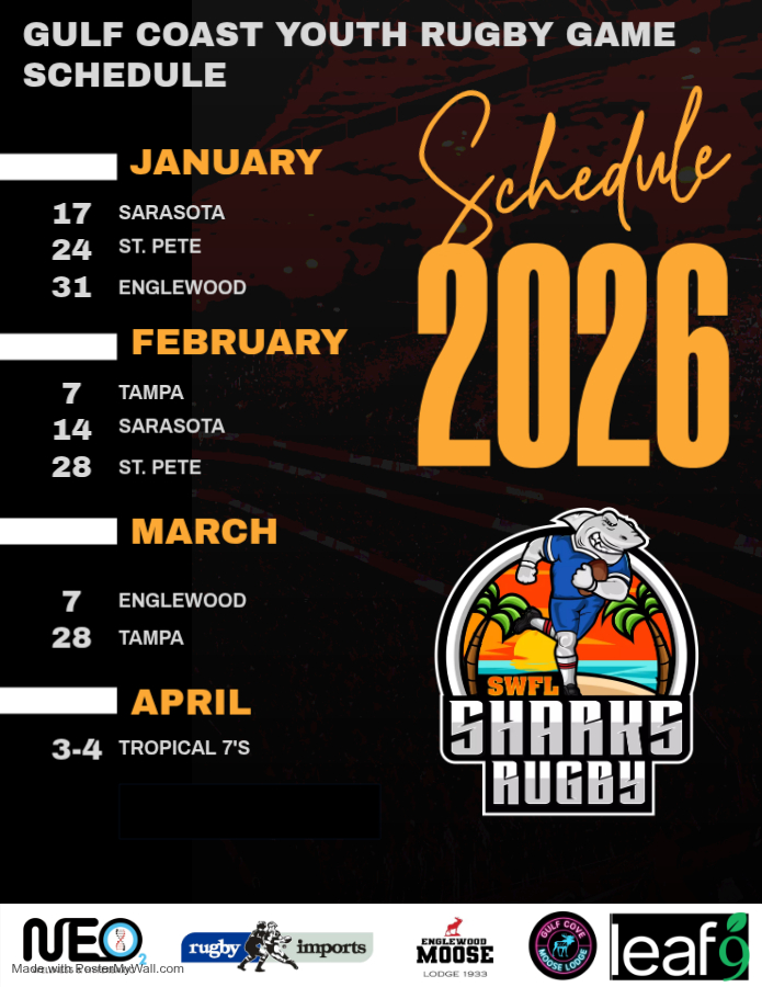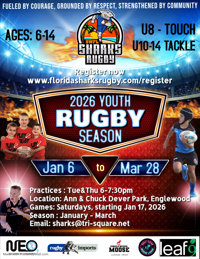 We’re excited to announce the start of the SWFL Sharks Youth Rugby Season, running January 6 through March 2026!